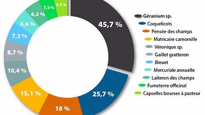 Figure 1 : Dicotylédones adventices principales présentes dans l’ensemble des zones de production de colza. (©Corteva)