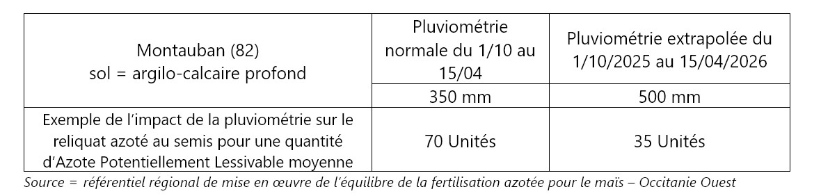 Outre l’impact sur la structure du sol, les pluies intenses en interculture entrainent le lessivage des nitrates et donc un reliquat azoté accessible aux cultures de printemps en suivant significativement diminué.
