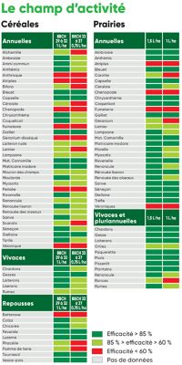 | Ray-grass | Dicotylédones | 1.00 L/HA | 1 /an | 14 | 39 | 14 | 5 |
