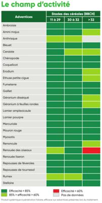 | Seigle de printemps | Dicotylédones | 0.5 L/HA | 1 /an | 13 | 39 | DAR F | 5 |