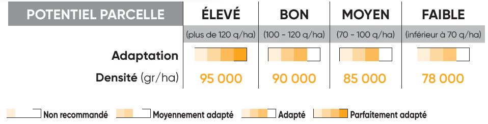 Selon le potentiel de la parcelle :