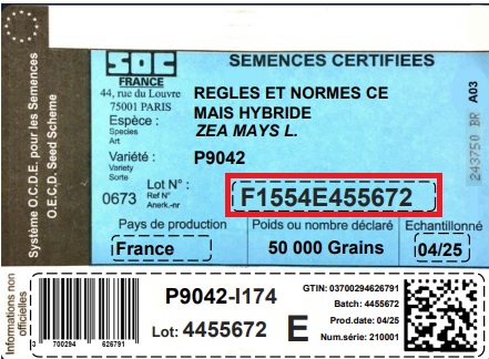 Le numéro de lot se situe au cul du sac sur l’étiquette bleue de certification.